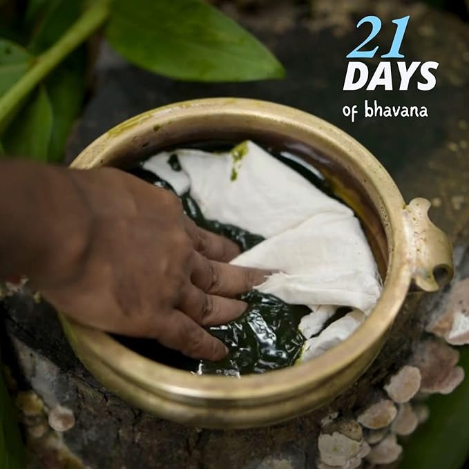 - Prepared using the Herbs which are nourishing the eyes.Thriphala+Daruharidra kashaya and Tulsi+Sahadevi juice are prepared and a cotton cloth is dipped and dried in this solution for 21 times in 21 days to get all the herbal content on the cloth